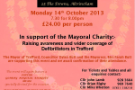 In support of the Mayoral Charity:-Raising awareness and wider coverage of Defibrillators in Trafford.The event will again feature a superb Gonbay Mayoral Banquet Menu specially devised for the occasion.Tickets are £24.00 per person For tickets and tables and all enquiries please contact one of:Cllr John Lamb - 0161 928 3664Cllr Brian Rigby - 0161 969 7640Cllr Mike Whetton - 07831 338218